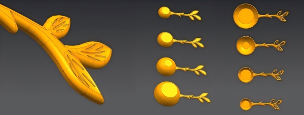 Primum, perpendendis producti figuram et potentialem usum praevie experimento innixum. Usus zinci mixturae primariae materias densitatem et notas superficiei computavimus, ergonomicas incorporavimus et altiorem dimensionem designavimus pro quattuor cochlearia mensurandi vel cochlearia glaciei. Postmodum curvam unamquamque curvam, R-radii angulos et alia minuta singula his dimensionibus innixa probavimus.